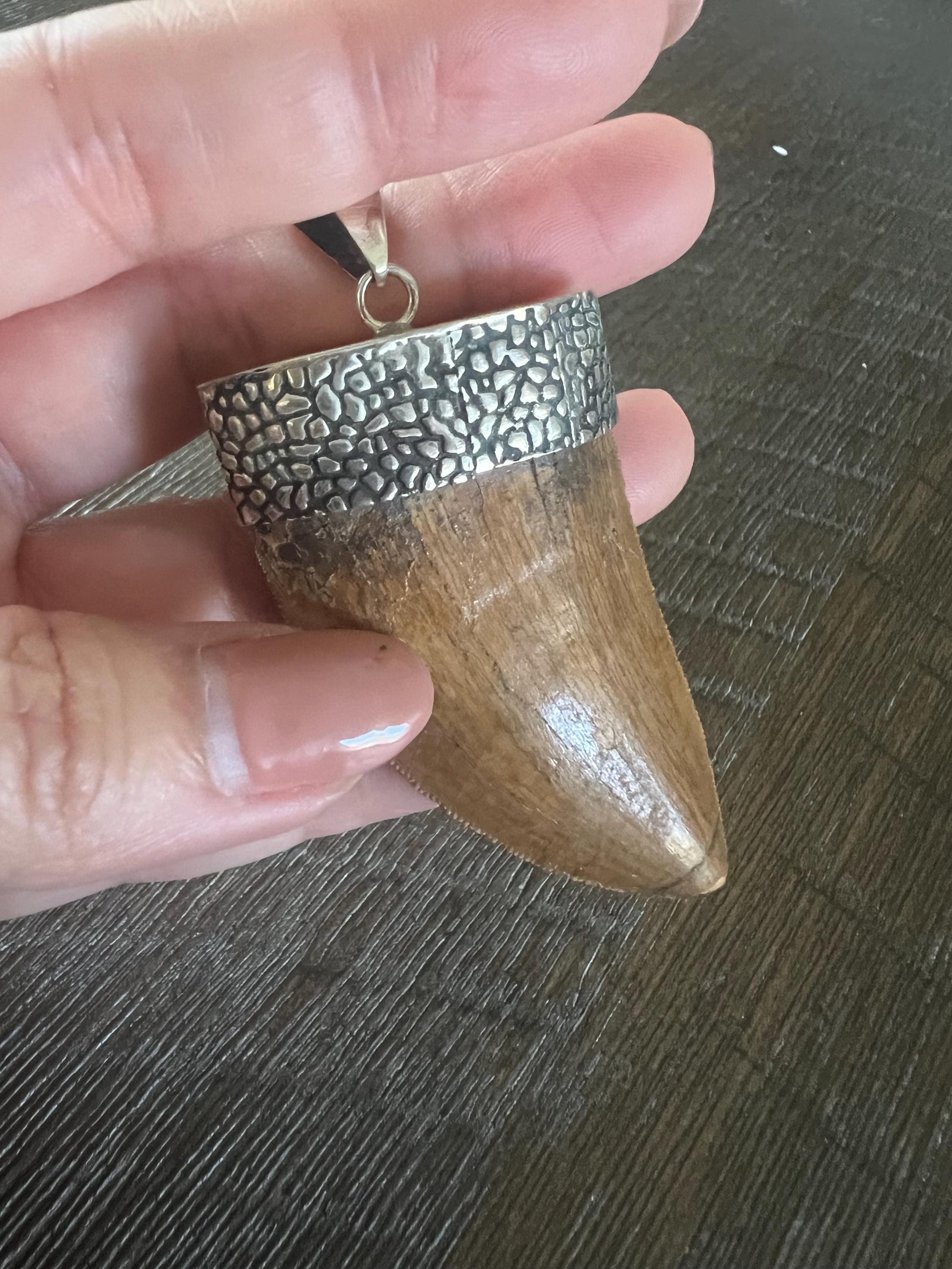 1.5” Carcharodontosaurus Tooth Pendant | Sterling Silver