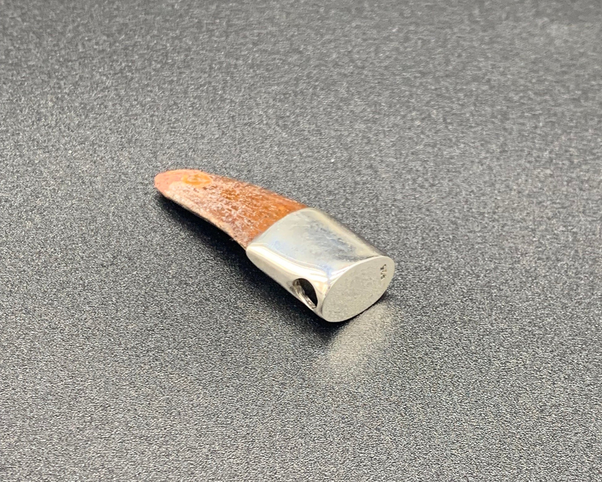 Elevate your style with this extraordinary pendant featuring a genuine Carcharodontosaurus tooth. Beautifully encased in sterling silver, this fossilized tooth is a striking fusion of prehistoric history and hand crafted artisanship.