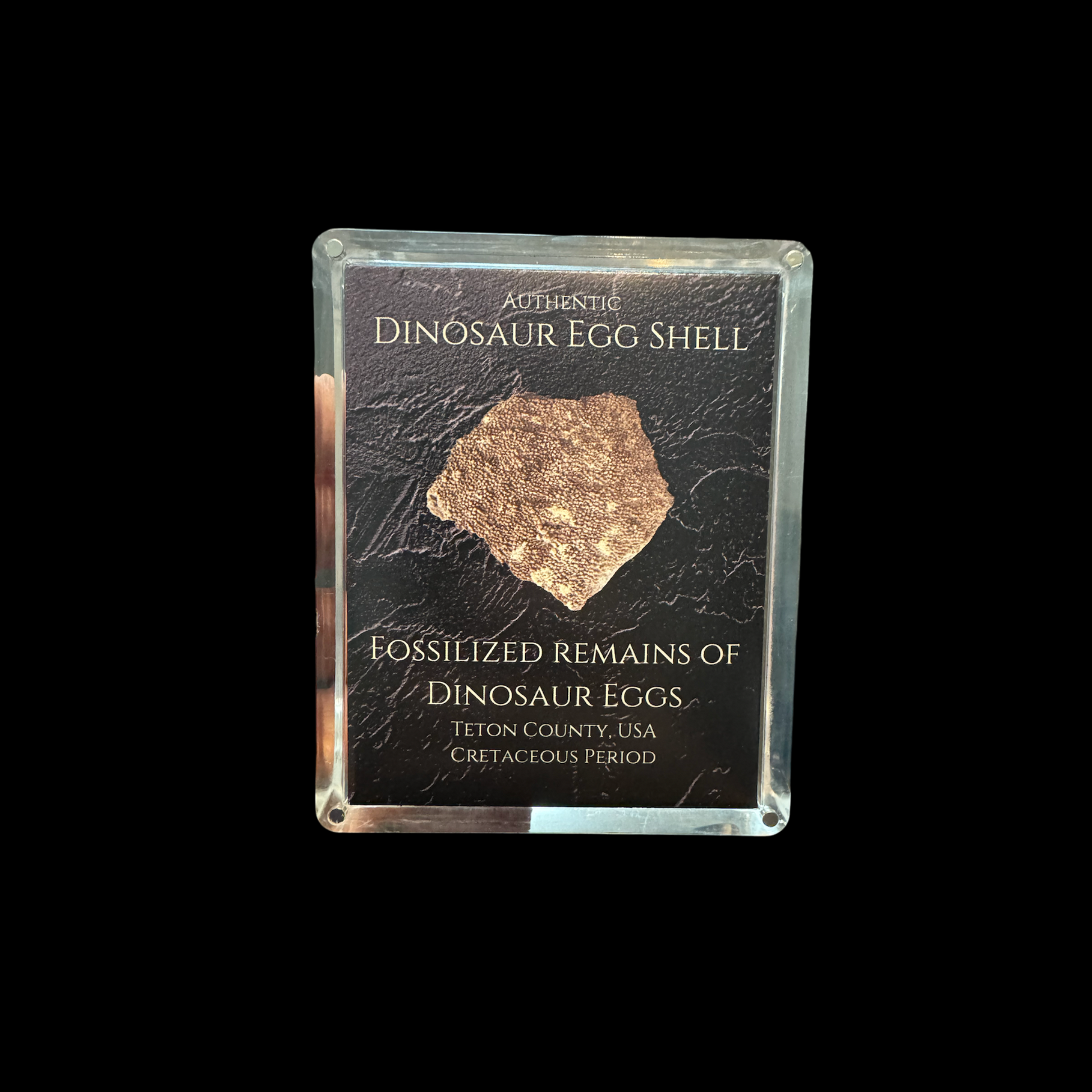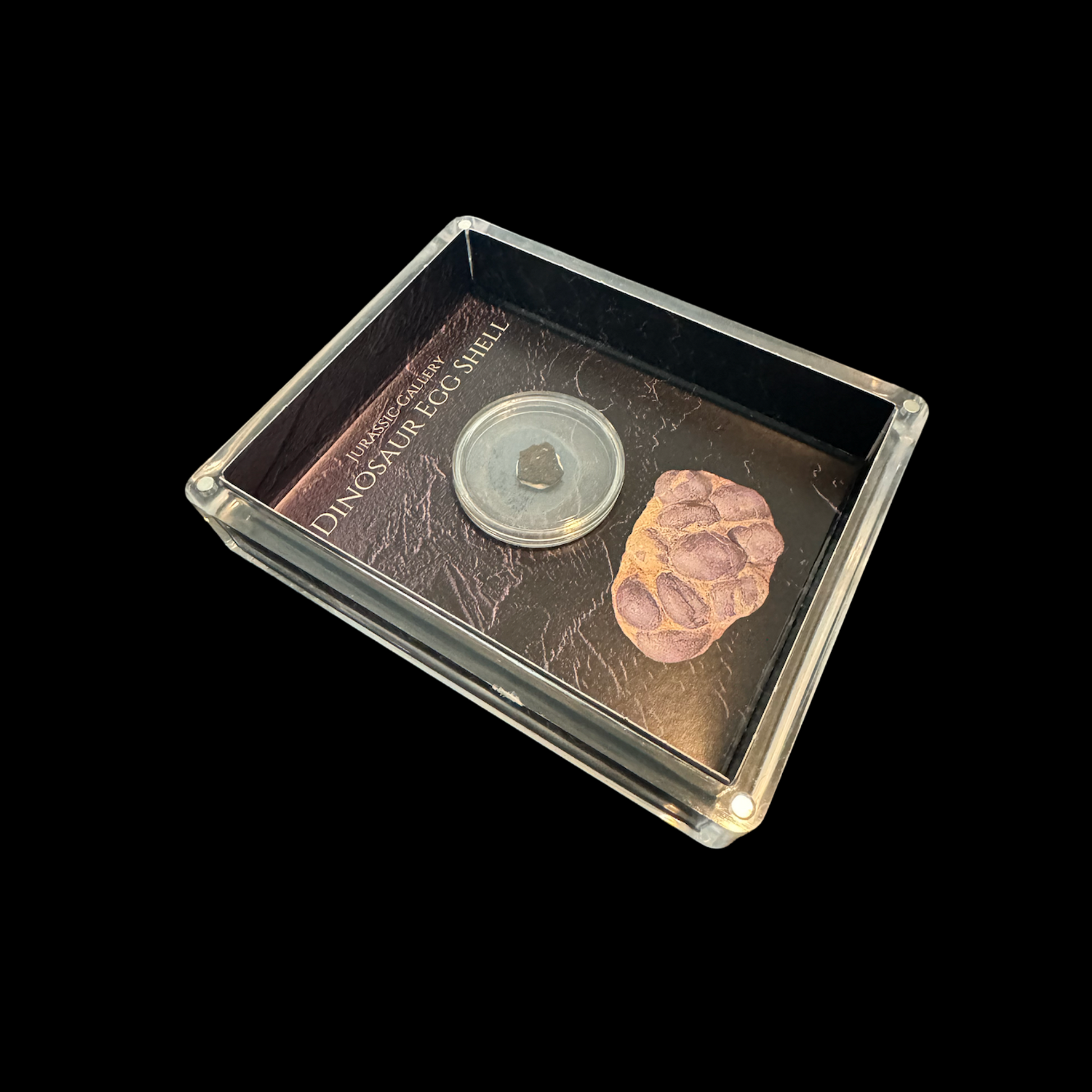 The Dinosaur Egg Shell Fossil Gift Box contains one authentic Dinosaur Egg Shell fragment from the Cretaceous period (approx. 65 million years old), found in the Teton County Formation, USA.