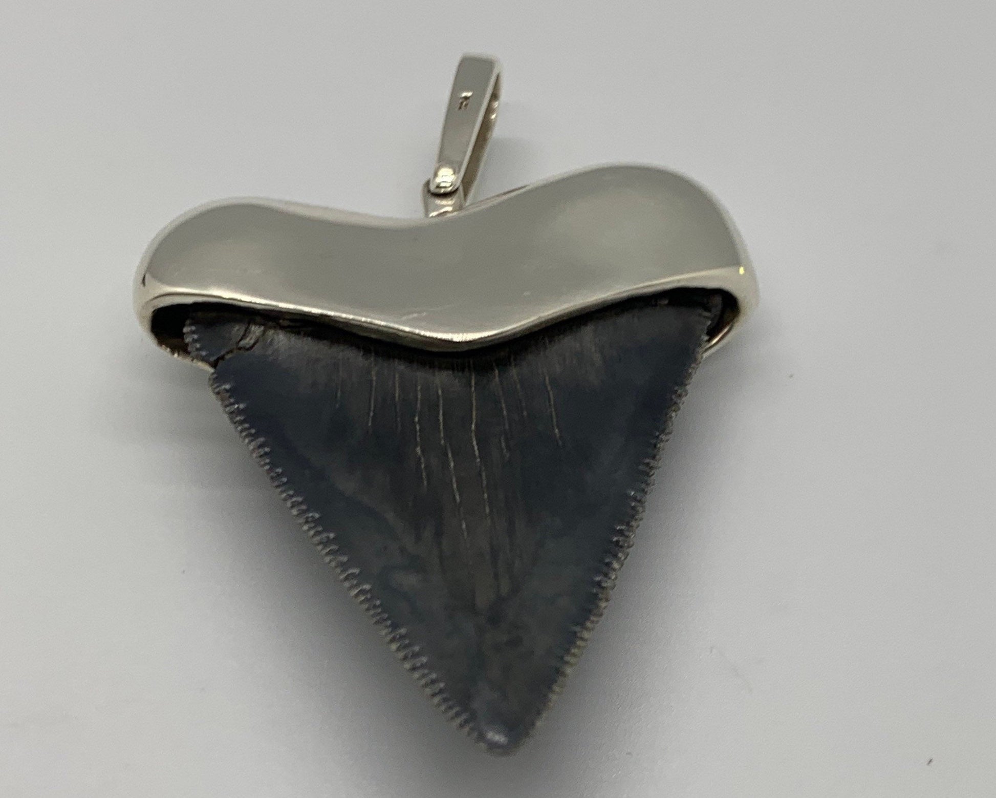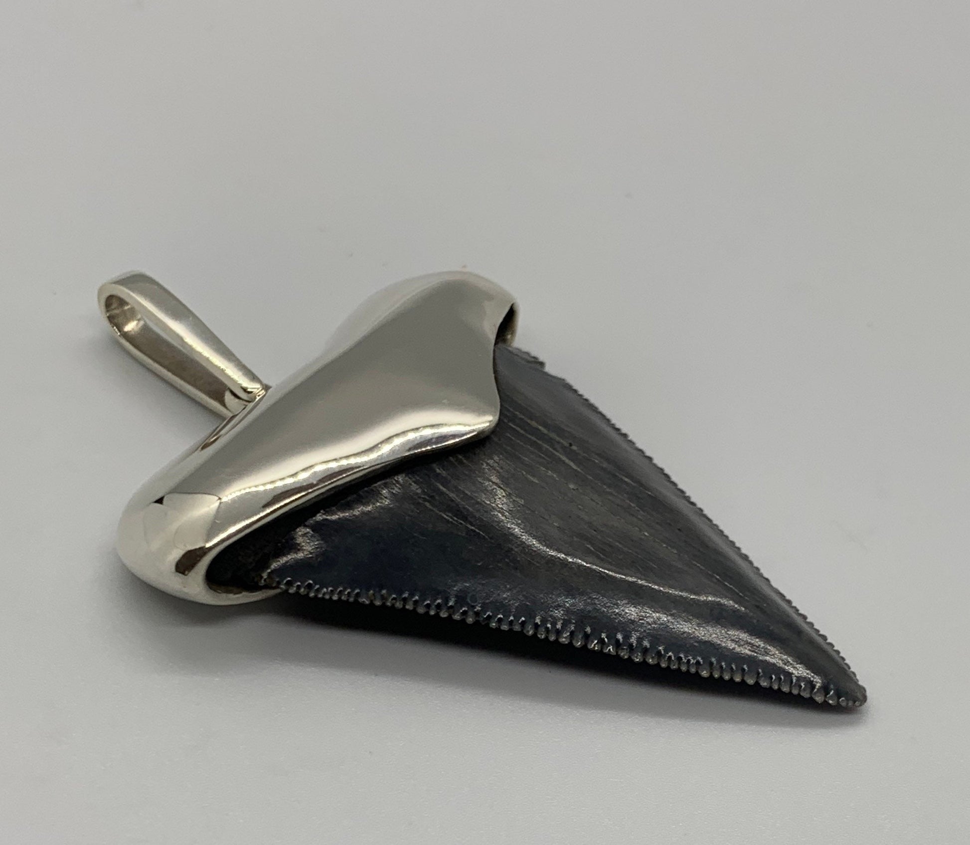 A gorgeous one of a kind tooth pendent. 100% authentic fossil. Make a statement with this large tooth pendent, exquisitely set on sterling silver- cromo finishing.