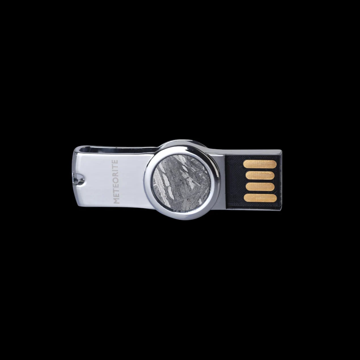 32GB Flash Drive with Muonionalusta Meteorite. Experience the perfect blend of cutting-edge technology and timeless wonder with our 32GB Flash Drive featuring a real Muonionalusta Meteorite insert. This unique flash drive not only ensures secure data storage but also offers you the chance to carry a piece of the universe in your pocket.